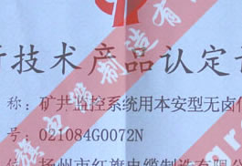 高新技术产品认定证书(矿井监控系统用本安型无卤低烟屏蔽信号电缆)