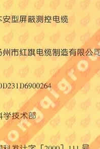 国家级火炬计划项目证书(本安型屏蔽测控电缆)