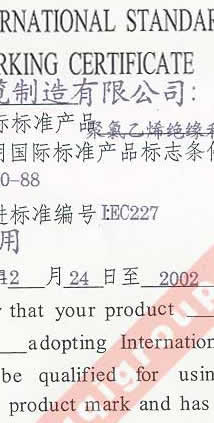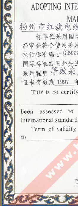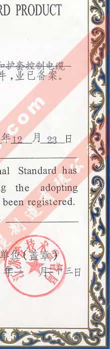 国家技术监督局采用国际标准证书(聚氯乙烯绝缘和护套控制电缆)