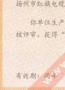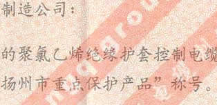 扬州市重点保护产品称号证书(聚氯乙烯绝缘护套电缆产品)