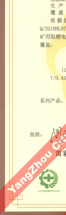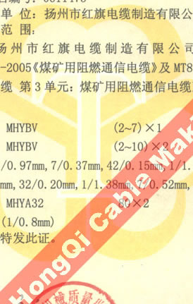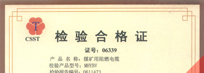 国家采煤机械质量监督检验中心检验合格证--煤矿用阻燃电缆(MHYBV)