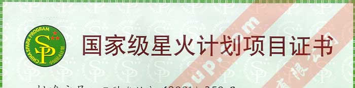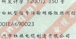 国家级星火计划项目证书(防白蚁型信号传输网络阻燃测控电缆)