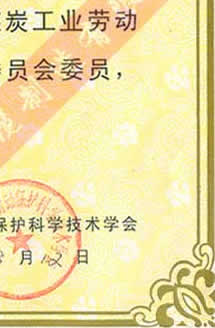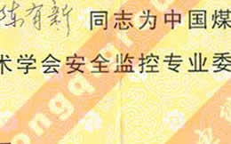 聘请董事长陈有新为中国煤碳工业劳动保护科学技术学会安全监控专业委员会委员证书