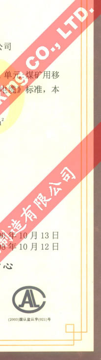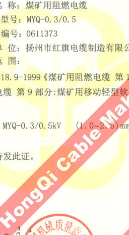 国家采煤机械质量监督检验中心检验合格证--煤矿用阻燃电缆(MYQ-0.3/0.5)
