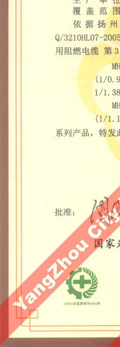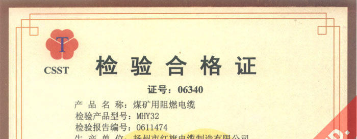 国家采煤机械质量监督检验中心检验合格证--煤矿用阻燃电缆(MHY32)
