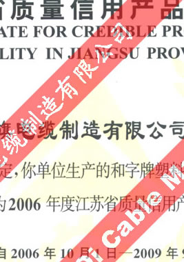 江苏省质量信用产品证书