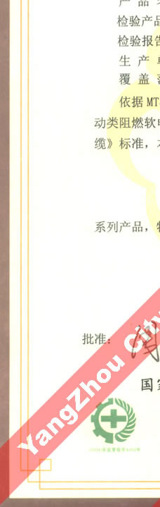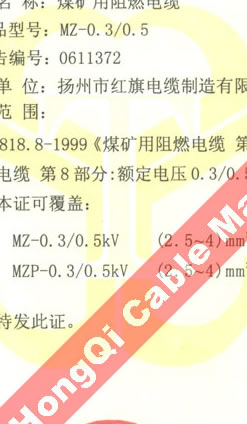国家采煤机械质量监督检验中心检验合格证--煤矿用阻燃电缆(MZ-0.3/0.5)
