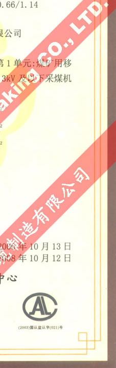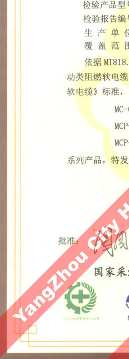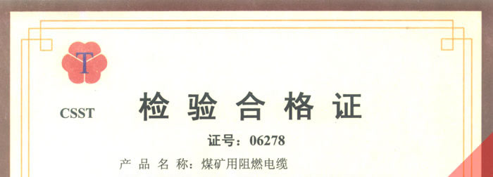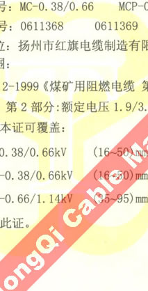 国家采煤机械质量监督检验中心检验合格证--煤矿用阻燃电缆(MC-0.38/0.66,MC-0.66/1.14)