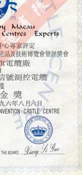 96澳门第七届仲夏国际精品畅销产品及技术博览会金奖