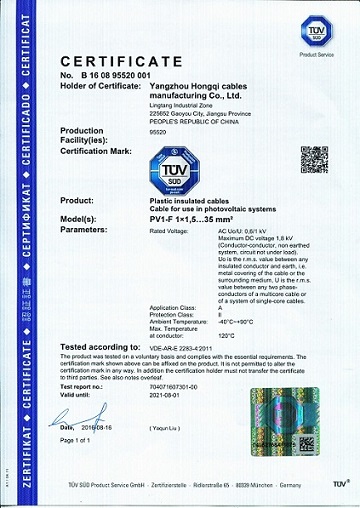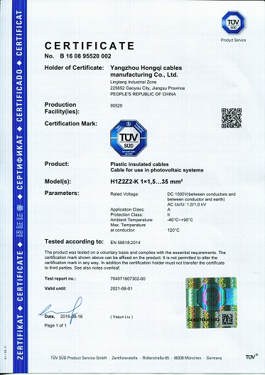 日前,在红旗全体电缆人的共同努力下,红旗电缆多宝app官网生产的太阳能光伏电线电缆成功通过了德国莱茵(简称TUV)认证,本次认证覆盖了欧盟EN50618:2014和德国VDE-AR-E2283-4:2011两个标准的光伏电线电缆,电线从1×1.5m㎡到1*35m㎡的全部规格、电缆从2×1.5m㎡到2*6m㎡的全部规格。